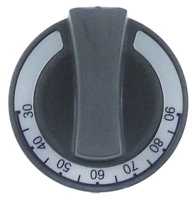Knob Thermostat T.Max. 90 ° C Ø 60 mm axel Ø 6x4,6mm Platt yta övre grå temperaturområde 30-90 ° C gico